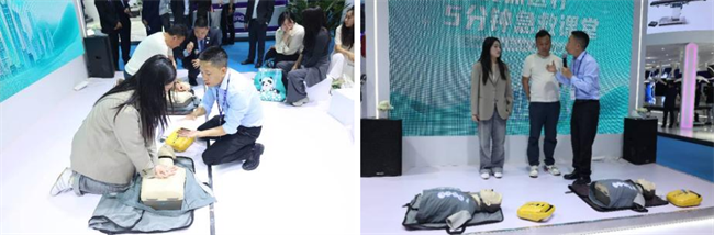 在创新技术展示之外,安保医疗将展台打造为“急救技能普及站”。专业讲师通过“理论讲解+实操演练”的方式,现场演示AED使用与CPR标准操作流程,观众上手实践“黄金四分钟”急救技能。